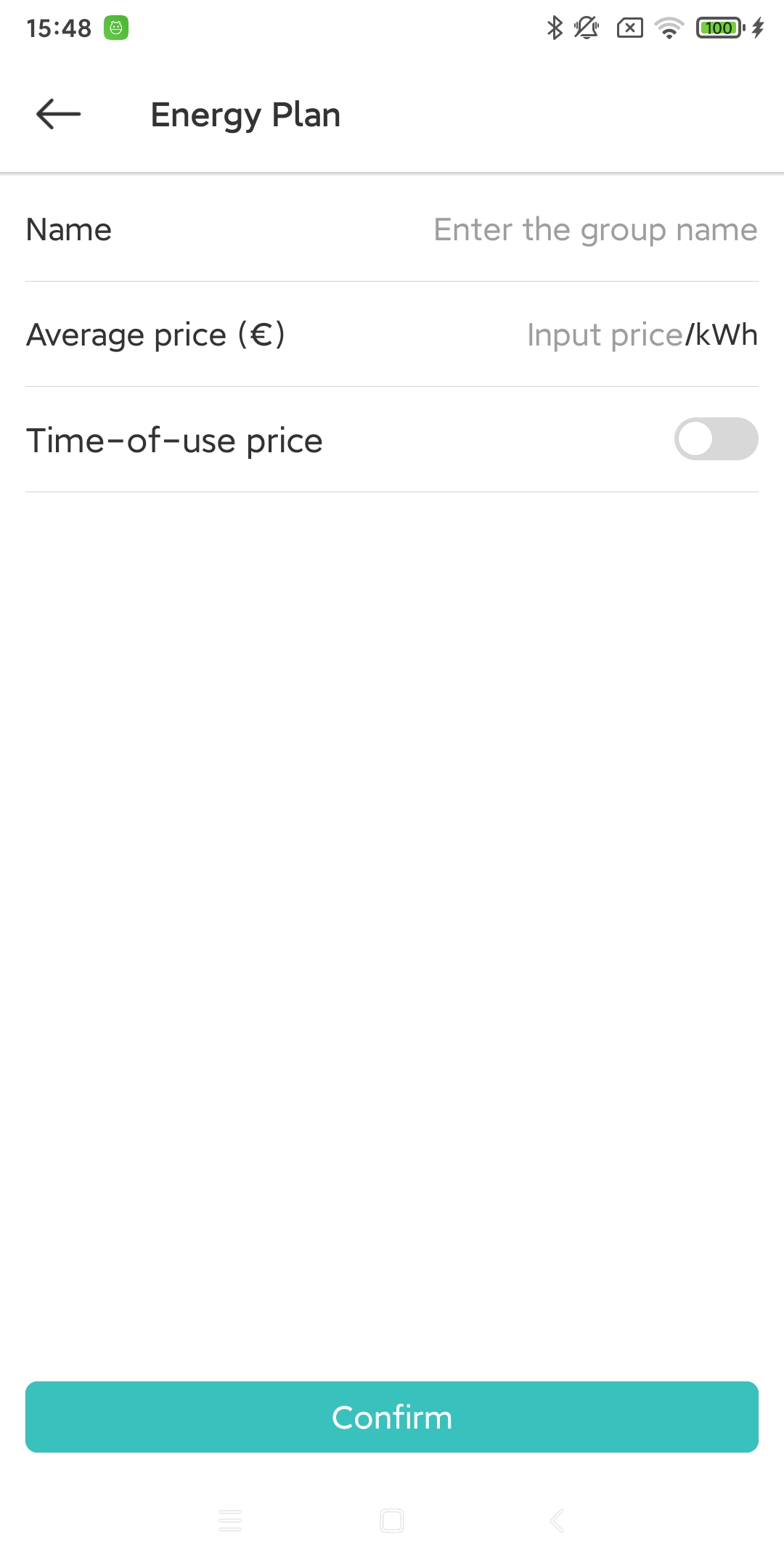 Click the “Add” button on the “Energy Plan” page. If your area implements peak and valley charges, you can turn on the “Time of Day Charge” switch to set different charges for different times.