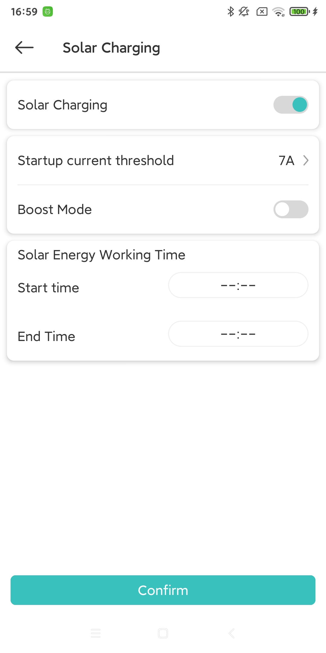 Turn on Solar Mode and set the starting current. (You cannot set the starting current when Boost Mode is turned on).