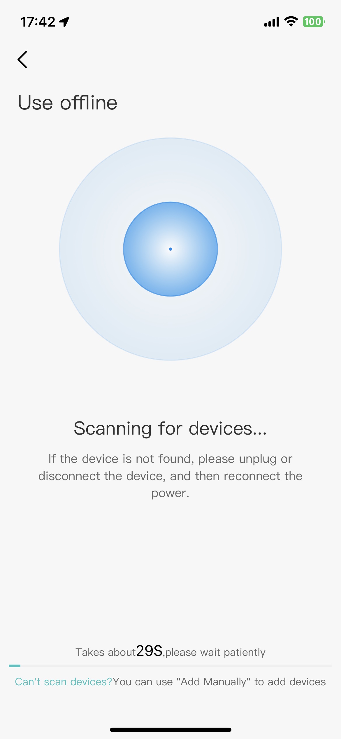 Tap the "Use offline" button for Bluetooth-only use to set up your device for quick connection when offline.