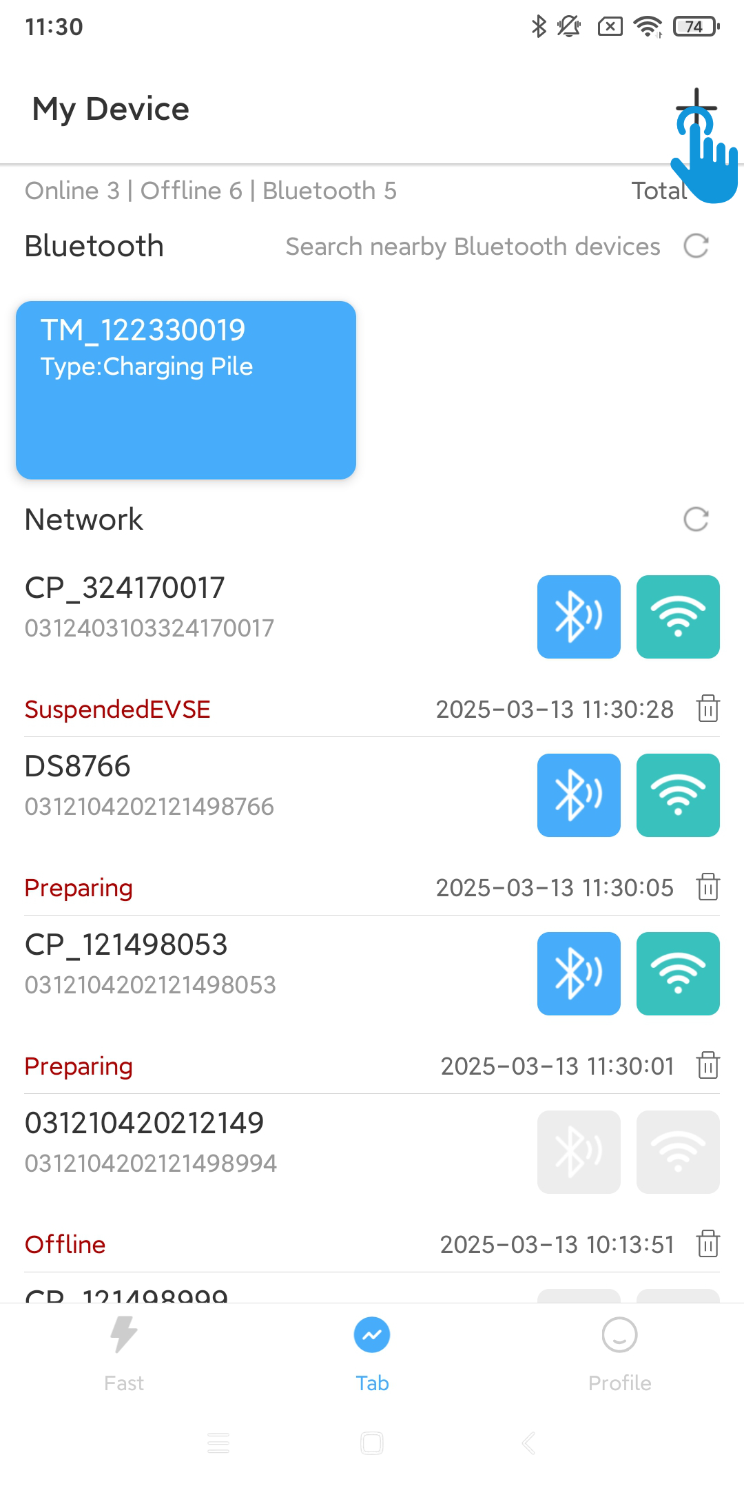 点击"快速"或"列表"页面中 "+" 按钮,进入搜索附近设备页面。