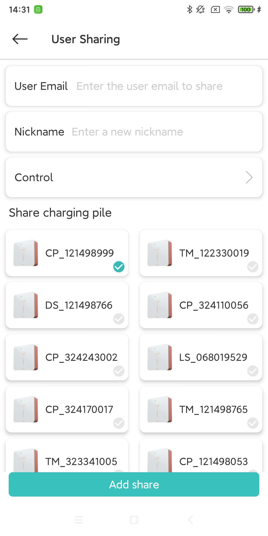 当您的充电桩设备需要多人使用时,您可以将此设备分享到其他账号中。